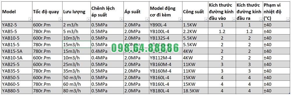 Nhờ những ưu điểm này, Bơm khí hóa lỏng YAB2-5 không chỉ mang lại hiệu quả vận hành cao mà còn đảm bảo độ ổn định và độ bền trong các hệ thống công nghiệp yêu cầu khắt khe.