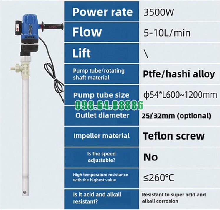 Máy bơm trục vít cầm tay hóa chất JDT-3500W-PTGELG là giải pháp hiệu quả cho các xưởng chiết rót dung dịch, đặc biệt trong môi trường hóa chất hoặc chất lỏng có độ nhớt cao.