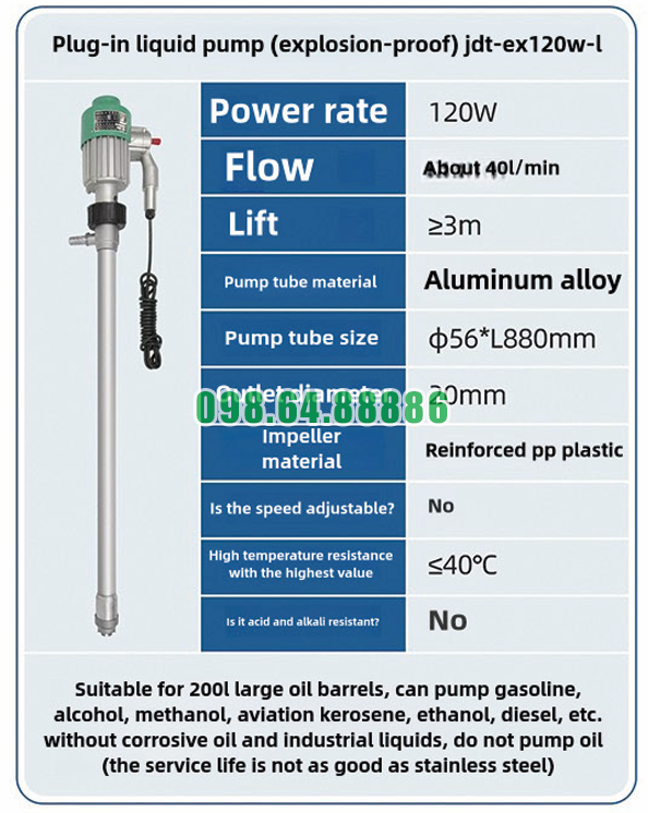 Cơ chế tự làm mát của Máy bơm chất lỏng cắm trực tiếp chống cháy nổ JDT-EX120W-L khi chạy liên tục