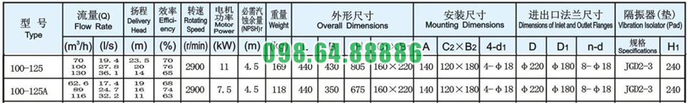 Máy bơm trục thẳng đứng, inline, tăng áp ISG100-125, IRG100-125 11kw, 100m3, 20m