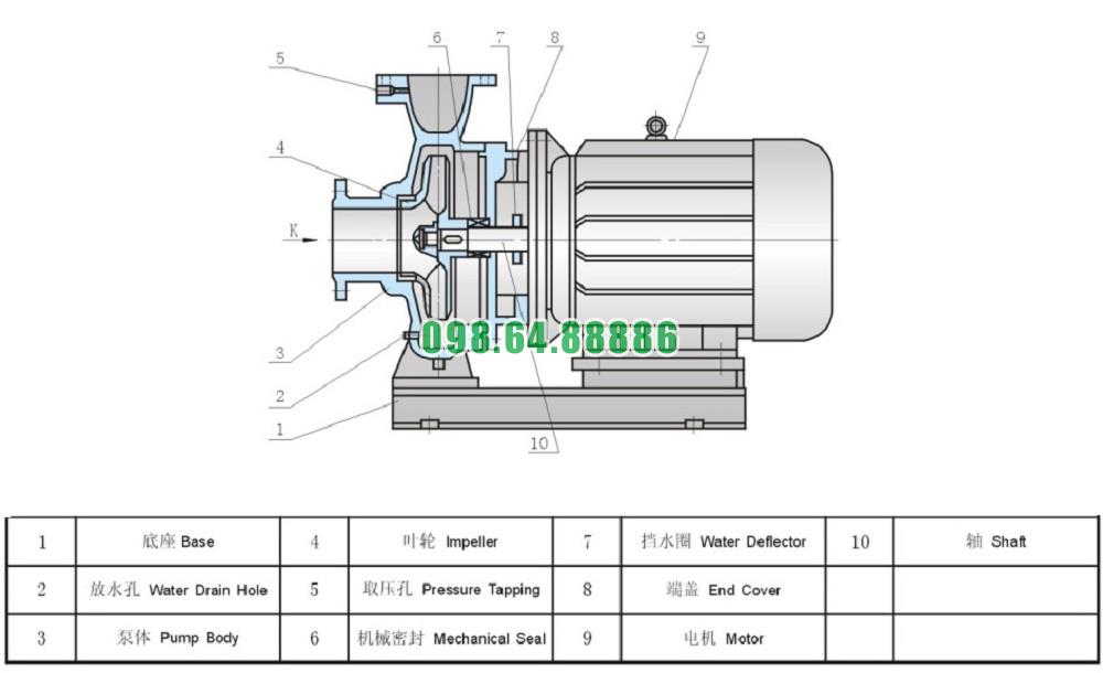 Bản vẽ cấu tạo và kích thước bơm nước trục ngang mã SLW100-ISW100-200 động cơ 22 kw