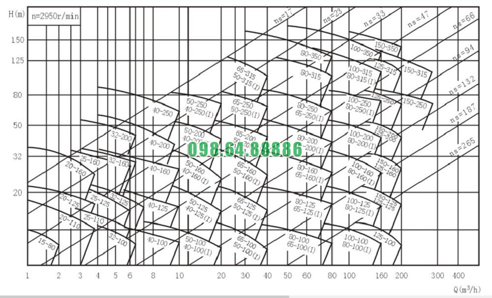 Đường cong hiệu suất bơm nước trục ngang SLW80-ISW80-200-I động cơ 22 kw