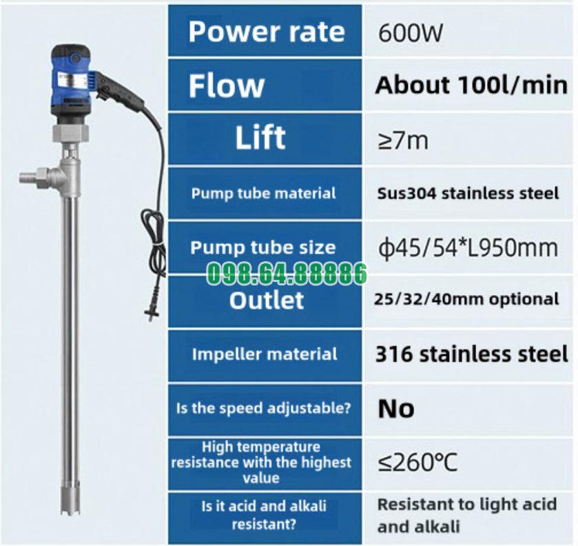 Bơm trục dài chịu nhiệt JDT-600W-G260