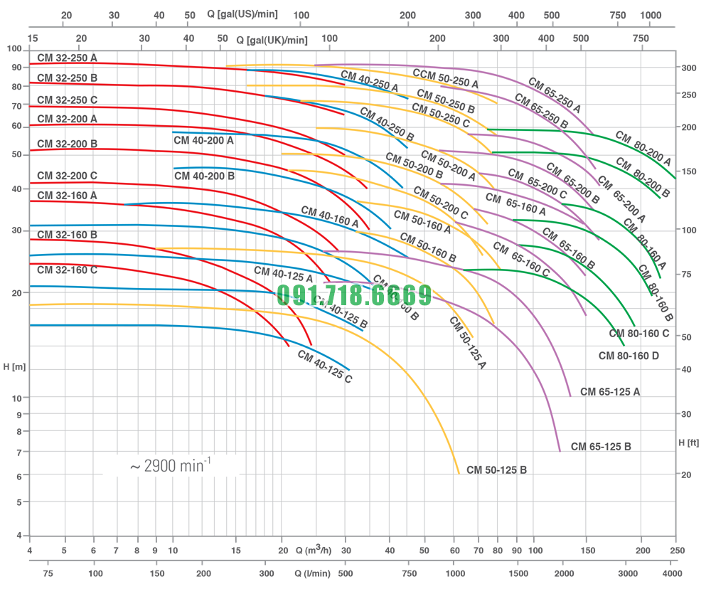 | CM32 - 250A | 30 m3 / h | 92 m | 15 kw | 380 v | DN50 / 32 mm | Vỏ gang FC200