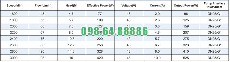 Hiệu suất nổi bật của máy bơm hóa chất 48v mã TDM-350PERU-DC48 tốc độ quay 3000 vòng/phút