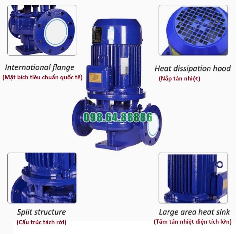 Bơm tăng áp inline ISG80-350B, IRG80-350B thuộc dòng bơm ly tâm trục đứng liền trục. Bên trong bơm được chế tạo khoa học, tối ưu cho việc vận hành ổn định, tăng áp suất và lưu lượng.